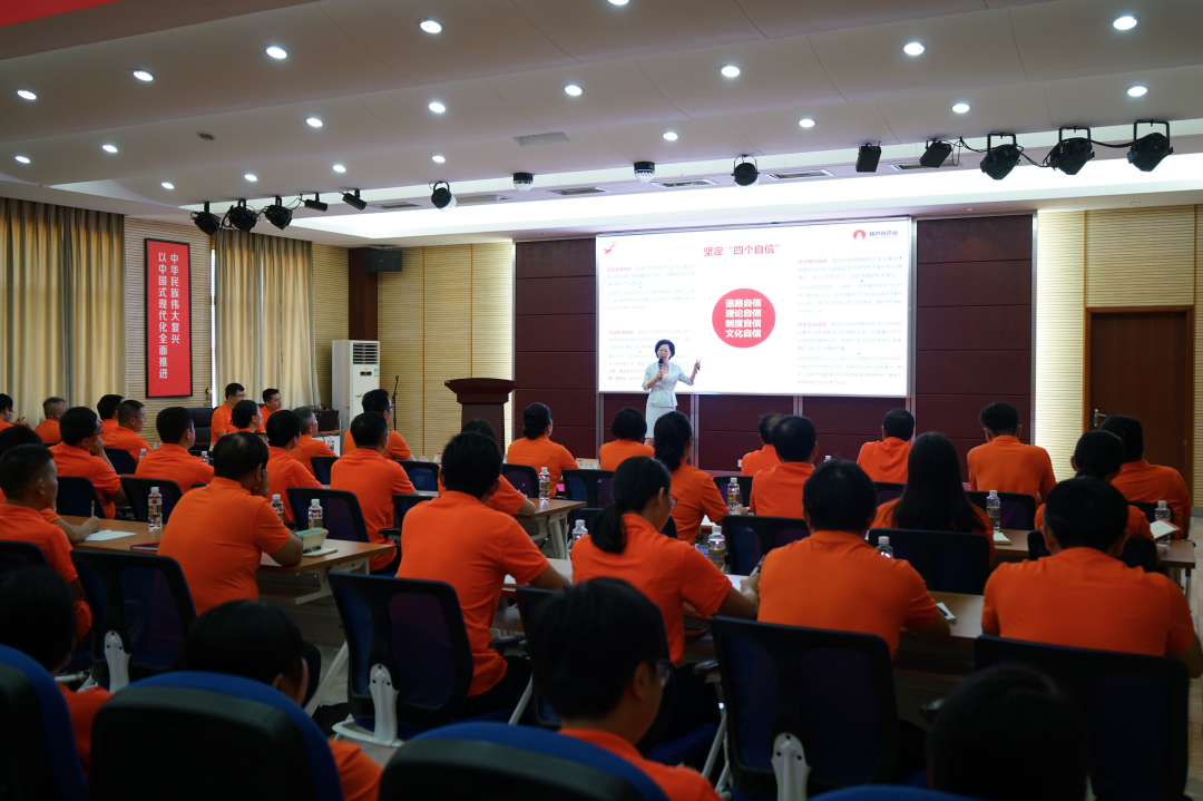 在党课的最后,刘景萍书记对公司全体党员和管理干部在思想和行动上提出了“转变思想、团结一致、分工明确、协作高效”的十六字工作要求,并从新形势、新挑战、新任务的角度对EBpay药业集团下半年的工作提出了三个方面的要求:坚持学在深处,在理论思想上培根铸魂;坚持谋在新处,在深化变革上攻坚克难;坚持干在实处,大兴调研之风,在推动发展上担当作为。
